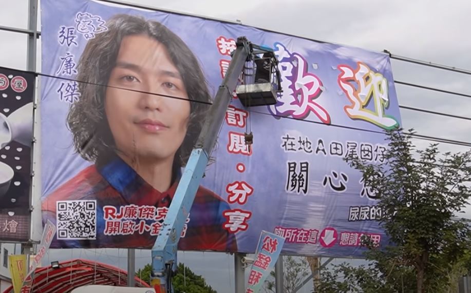 許多店家及政治人物為了宣傳、增加曝光度,會在一些馬路旁設置廣告看板。YouTuber「RJ廉傑克曼」張廉傑選在家鄉彰化田尾,用自己的大頭照掛上一個超級大的看板,除了宣傳自己的YouTube頻道外,也透過廣告台詞「在地A田尾囝仔關心您尿尿的地方」,告訴大家附近唯一公廁的位置,引發網友熱議。