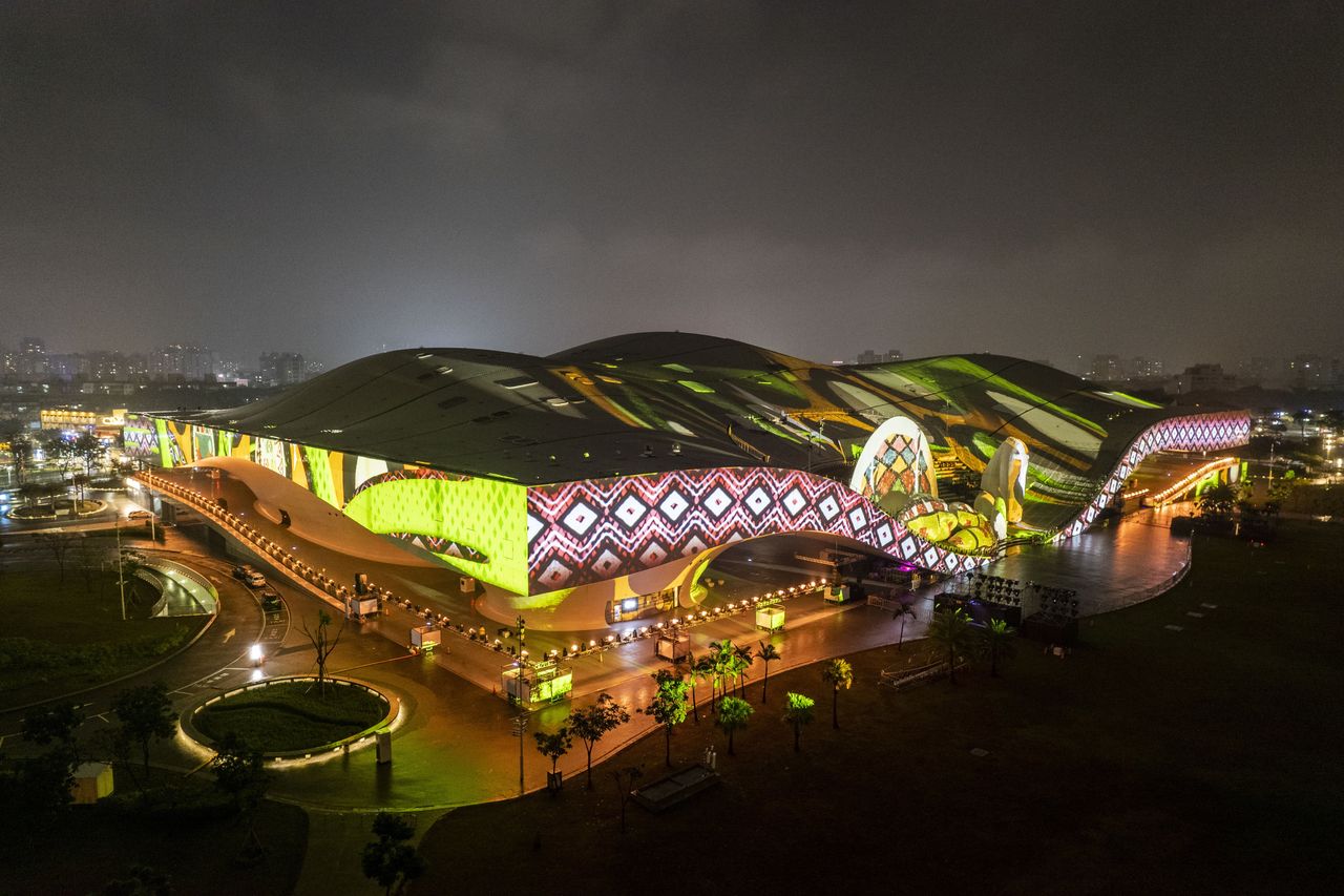 ▲高雄市政府攜手衛武營,共同推出台灣史上少見、長達381公尺的巨幅光影展演。(圖/劉振祥攝/衛武營國家藝術文化中心提供)