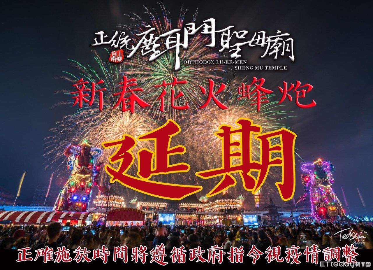 因春節前夕疫情升溫,內政部宣布「宗教團體停止辦理繞境、遊行、搶頭香、搶春牛等易聚集擁擠人潮、無法保持社交距離的集會活動」,正統鹿耳門聖母廟王增榮主任委員與委員、監察、代表團隊開會後,決議採取最嚴謹的防疫態度,宣布「國際新春花火嘉年華」將「延期」舉行。