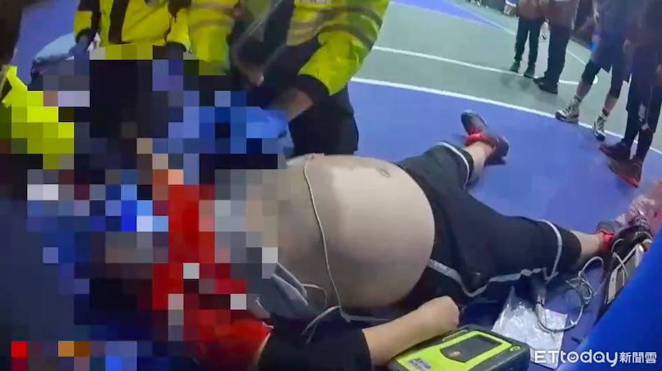 ▲61歲陳男打籃球突然心肌梗塞,警消輪番上陣CPR搶救 。(圖/記者陳以昇翻攝,下同)