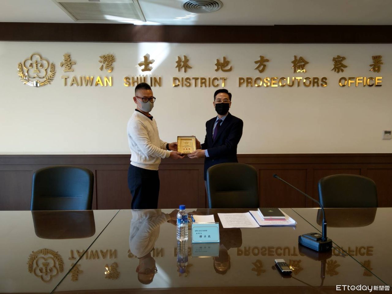 ▲士林地檢署政風室110年度推展廉政工作在全國地檢署兩人群組榮獲績效第一名,(左)士林地檢署政風室主任許志安獻獎予繆卓然檢察長。(圖/記者黃宥寧翻攝)