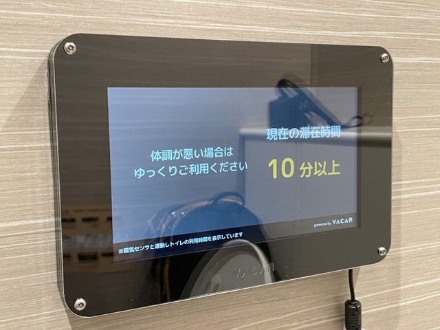 VACAN說明,設置平板螢幕提醒如廁時間的目的,在於讓顧客在用完廁所後,能意識到要在最快的時間內讓給下一位需要使用廁所的人。
