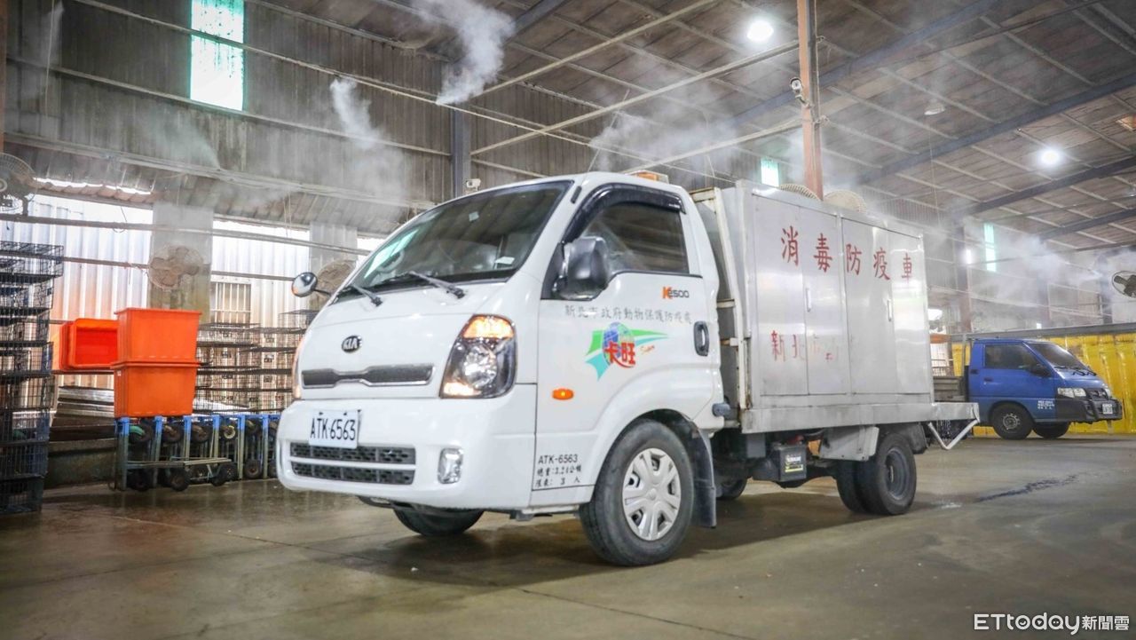 ▲新北市動保處噴霧式消毒車場內全面清消。(圖/新北市動保處提供,下同)