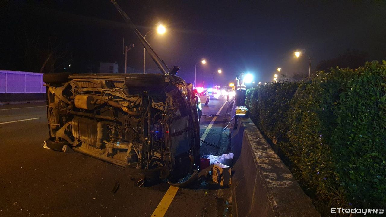 國道1號北上147公里處苗栗三義路段今(16)日清晨5時許發生一起死亡車禍!現場一輛廂型車自撞護欄,而猛烈撞擊力道導致車輛翻覆,側躺於內側車道上,呂姓駕駛受困車內沒了生命跡象,其余姓妻子則自行脫困。警方獲報到場,緊急將2人送醫,但呂男仍因傷重不幸宣告不治,至於詳細事故原因仍有待調查釐清。