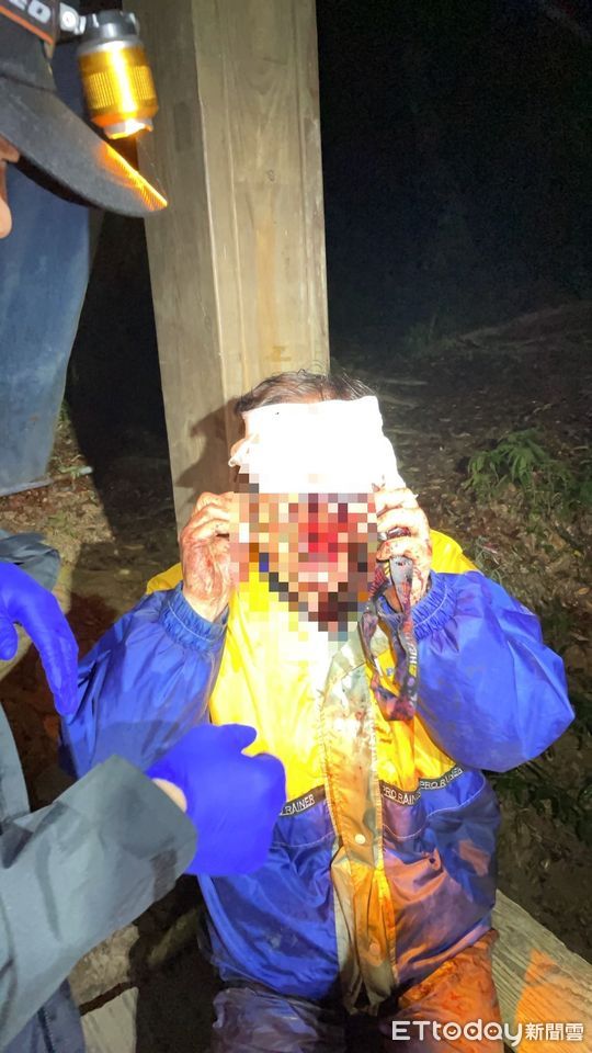 21時23分檜谷山莊莊主回報已接觸傷者,先將傷者傷口包紮並帶至舊登山口,21時47分泰武分隊到達舊登山口接觸傷者,立即評估傷者傷勢,傷者意識清醒,左眼上方有10公分撕裂傷、左眼腫脹無法睜開,因傷者可自行行走,由救難人員攙扶下山,今(16)日00時21分由泰武分隊救護車後送至潮州安泰醫院救治。