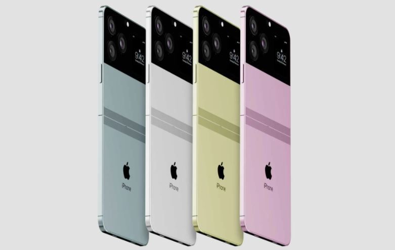 一名設計師Antonia De Rosa釋出最新的iPhone摺疊機渲染圖,預測將有湖水藍、珍珠白、萊姆黃及玫瑰香檳紫4款顏色,機身採用鍍鉻鉸鏈,後置有3顆鏡頭,螢幕為6.3吋,展開後則為8吋,並砍掉瀏海、採指紋辨識解鎖。