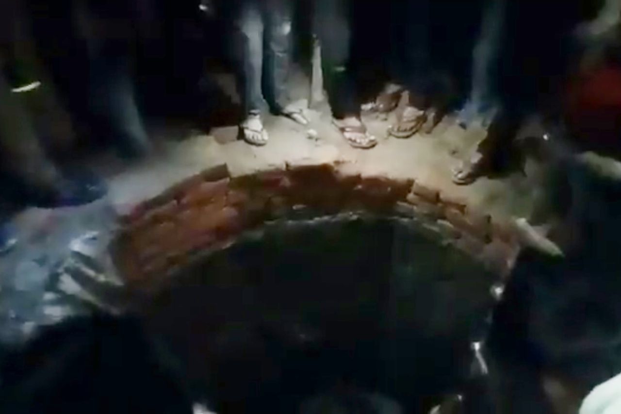 ▲ 事發後民眾圍繞發生意外的古井周圍。(圖/翻攝自Twitter)