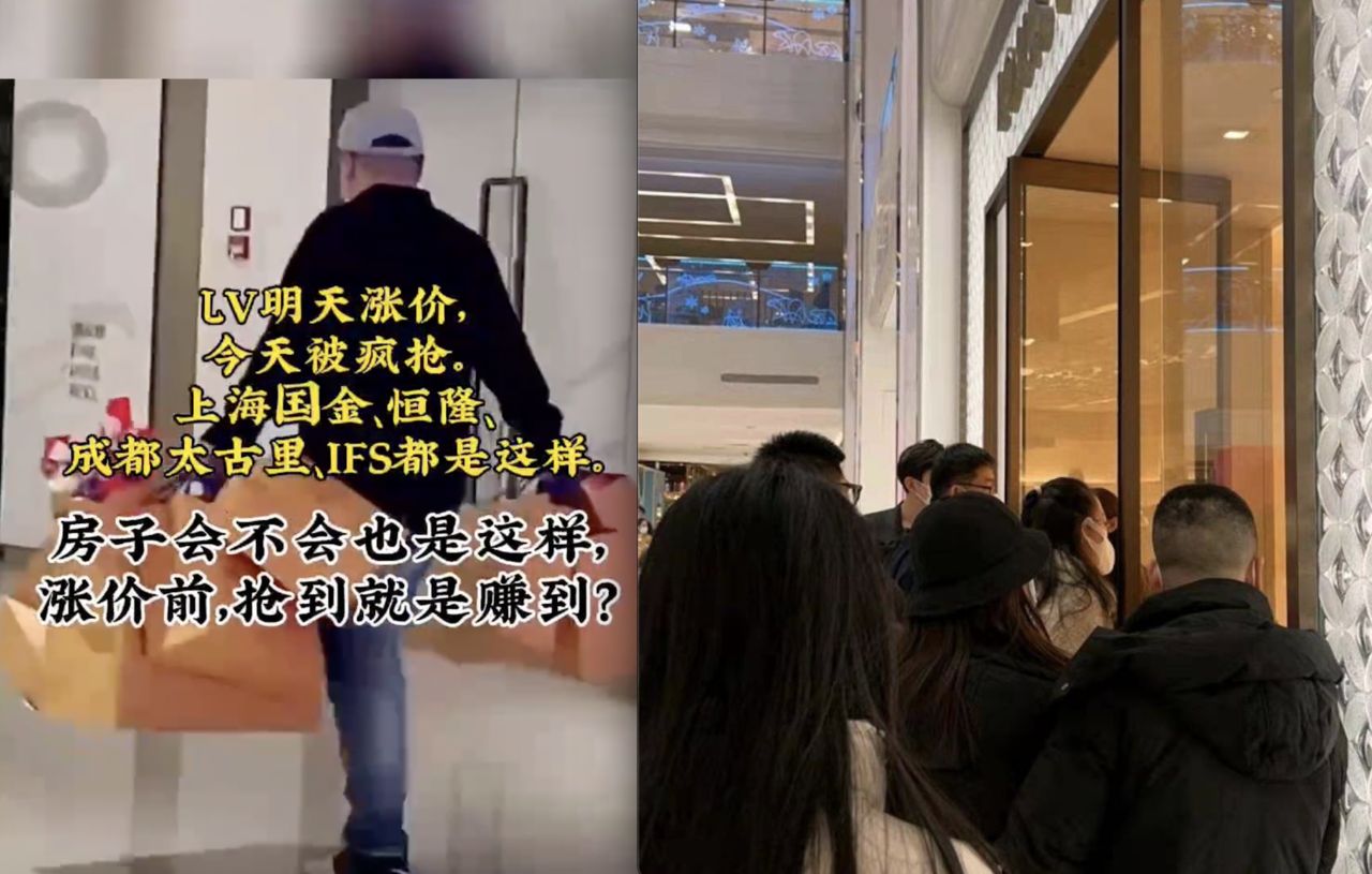 除了杭州,大陸國內其他城市的LV門店也同樣在漲價前出現排隊情況。社交軟體顯示,北京、上海、廈門等地的LV門店前均排起了長龍。