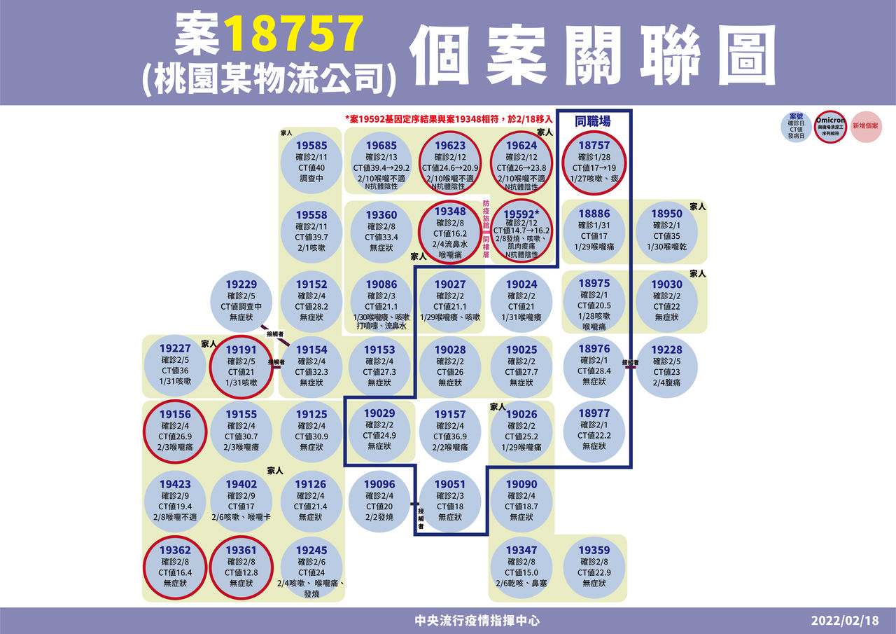 ▲2/18日翊物流確診個案關聯。(圖/指揮中心提供)※點圖放大