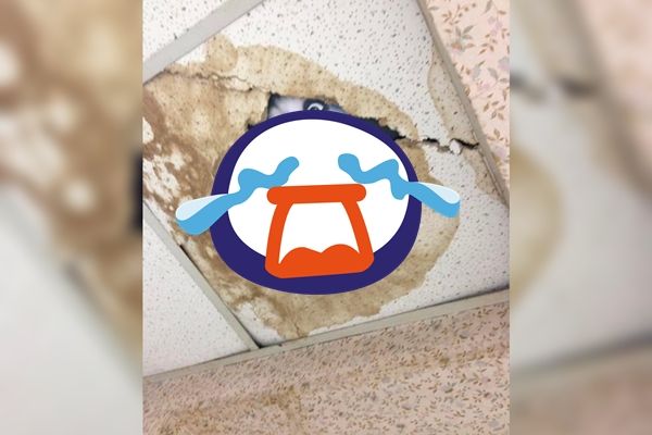 依據照面畫面,這間公廁的天花板是用輕鋼架架成,其中一片格版有破洞,而破洞當中竟然被塞入恐怖片的主角大頭貼,嚇得男子直呼「林撈勒…7天的宿便都排出來了」。