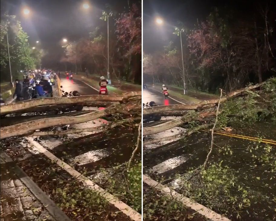 據悉,暨南大學21日晚間接獲學生通報,表示有多棵位在機慢車專用道旁邊的路樹倒塌,高大的樹身完全阻斷雙向交通,校方隨後連絡相關人員到場處理,晚間8點30分才把樹木排除,恢復雙向通行,整起事件未造成人員傷亡,路樹倒塌確切原因有待後續釐清。