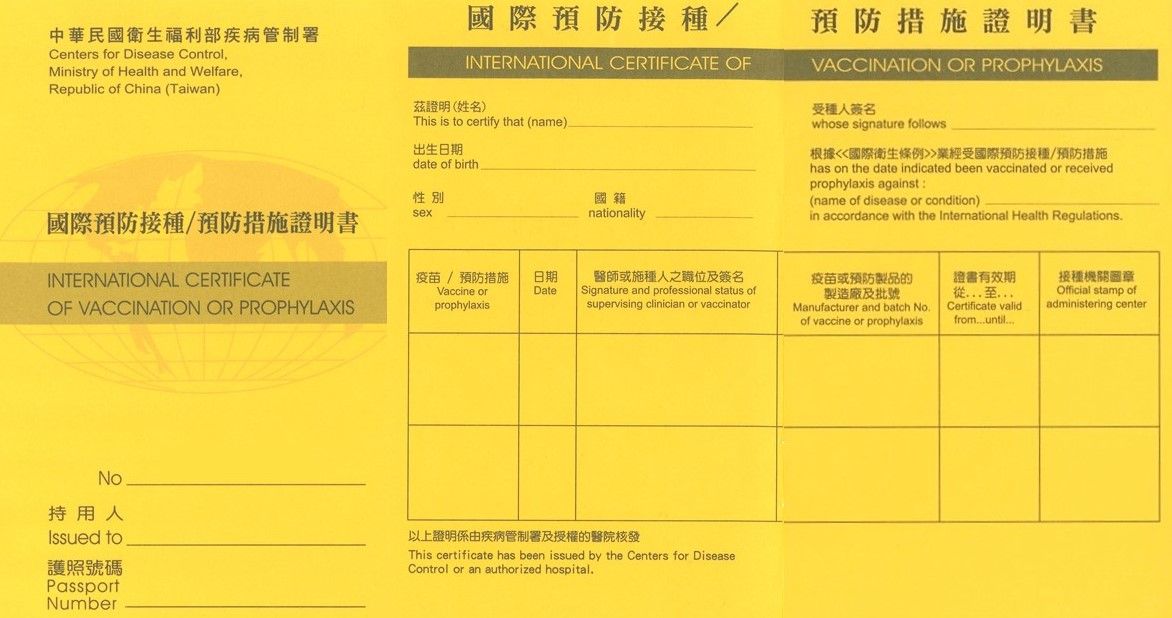 ▼我國現用國際預防接種證明書。(圖/中央疫情指揮中心提供)