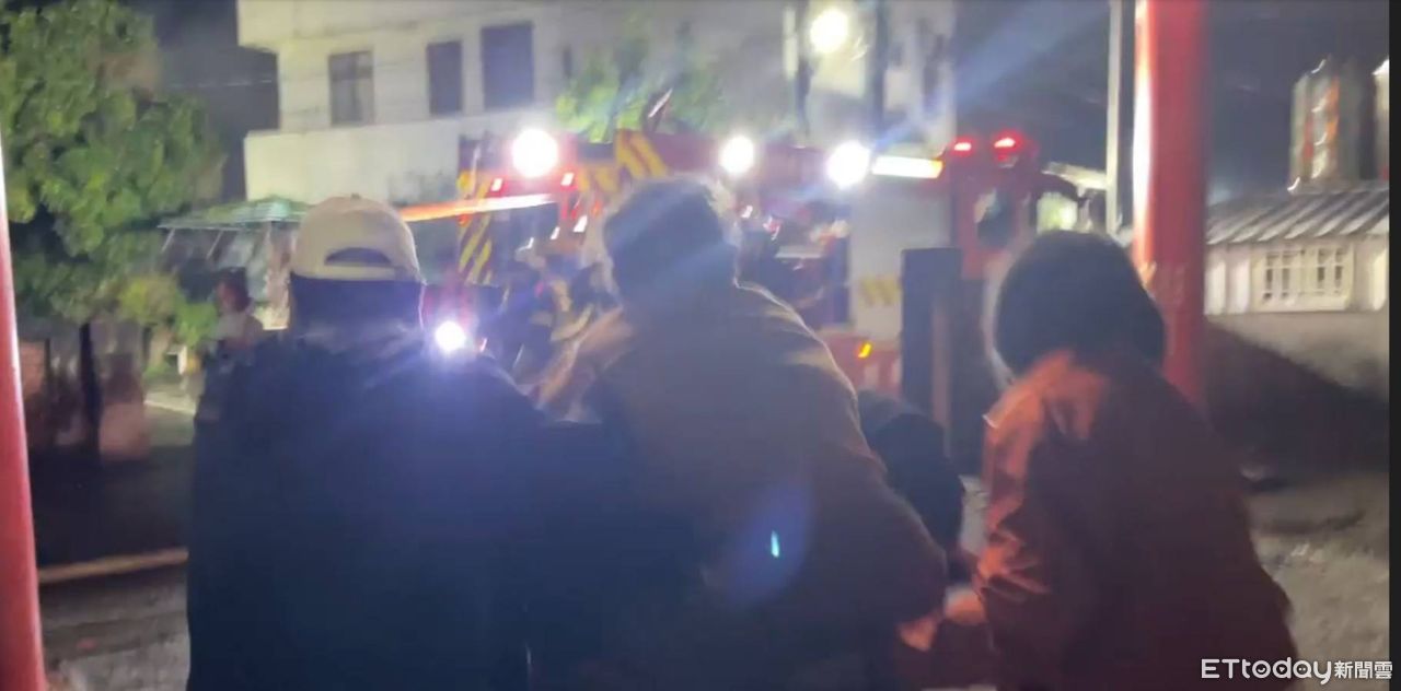 ▲台東市康樂地區老屋23日深夜發生火警,消防人員灌救。(圖/記者楊漢聲翻攝)