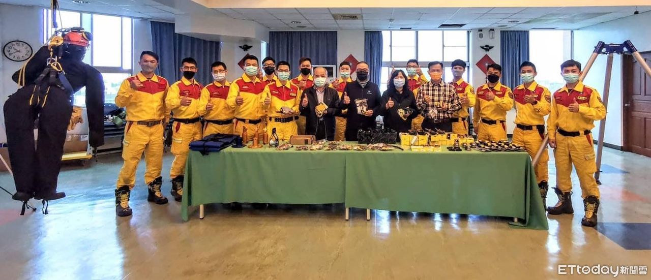 他表示,當年結下了這好緣,更因應近年來山難勤務層出不窮,繩索器材的應用救助技術越來越廣泛,隨著時間的演進救助器材也不斷的推陳出新,秉持著取之於社會用之於社會的精神,為提升消防局特搜大隊的救災效能及器材資源,捐贈一批繩索救援裝備,其中不僅有繩索個人技術的裝備,如ID下降器、ASAP確保器……等,提升個人在繩索上移動的速度以及安全,更是添購AZ腳架一組(價值21萬),在地形地貌多變的山區執行山域救助的過程中,固定點的選擇是經常遇到的難題,AZ三腳架提供救災人員在山域或都市救援中有更安全的固定點的選擇,提升山域救援的效率以及安全性。