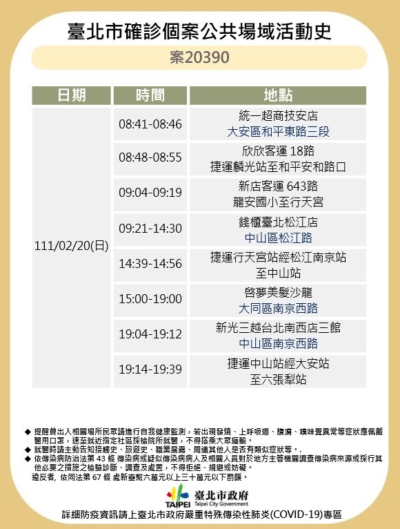 ▼台北市府25日公布案20390個案足跡。(圖/北市府提供)