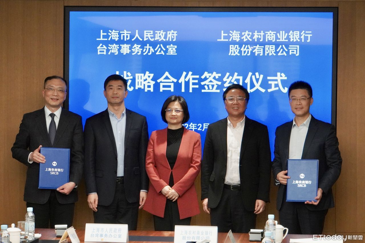 ▲▼在上海市台辦主任鍾曉敏、上海農商銀行董事長徐力、行長顧建忠見證下,由市台辦副主任王立新與上海農商銀行副行長應長明簽署戰略合作協議。(圖/記者趙禕攝)