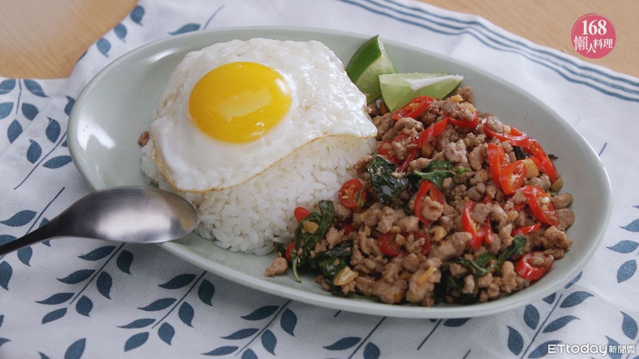 品嘗泰式料理肯定要點上一道打拋豬,鹹香帶辣非常下飯。《168懶人料理》示範4步驟、快炒15分鐘就完成「台版白飯小偷」,只要再煎顆蛋搭配就是完美的一餐!