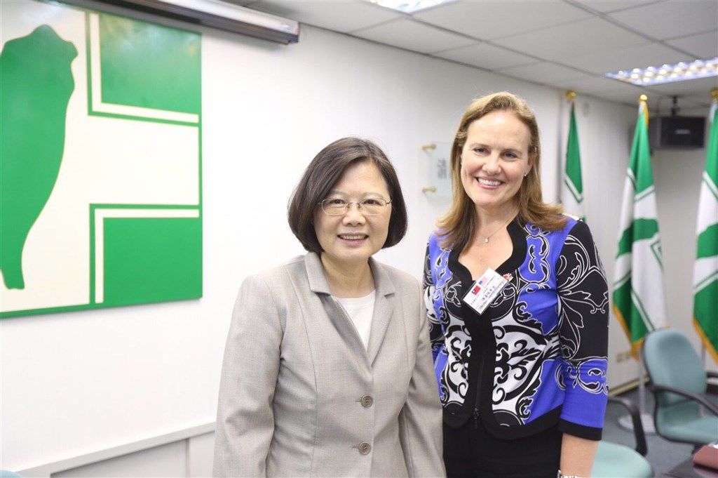 ▲總統蔡英文曾在2015年11月16日會見前美國國防部次長傅洛依(右)帶領的「新美國安全中心」訪團。(民進黨提供)