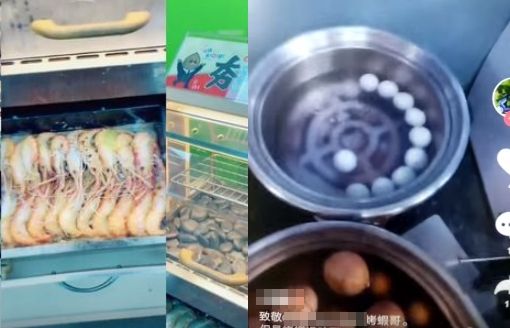 ▲店員用番薯機烤蝦。(圖/翻攝自爆料公社)