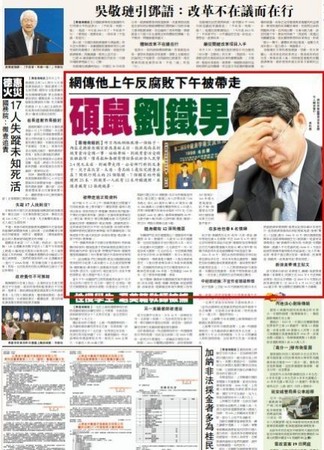 大陸國家發改委副主任劉鐵男8日遭撤職查辦,而網上有消息指稱,他不僅貪汙巨款,還包養8名情婦,落網時身上被搜出12張機票,顯示有預謀要落跑。消息還說,他喜歡收集A片,有關部門在他住處搜出300多張日本、歐洲A片。