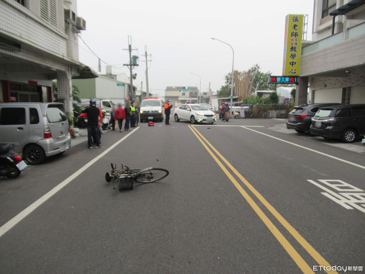 ▲台南永康區龍昌街發生一起死亡車禍,1名8旬陳姓男子騎自行車左轉,與蕭姓男子駕駛的自小客車發生碰撞,陳姓老翁噴飛倒地,送醫搶救仍傷重不治身亡。(圖/記者林悅翻攝,下同)