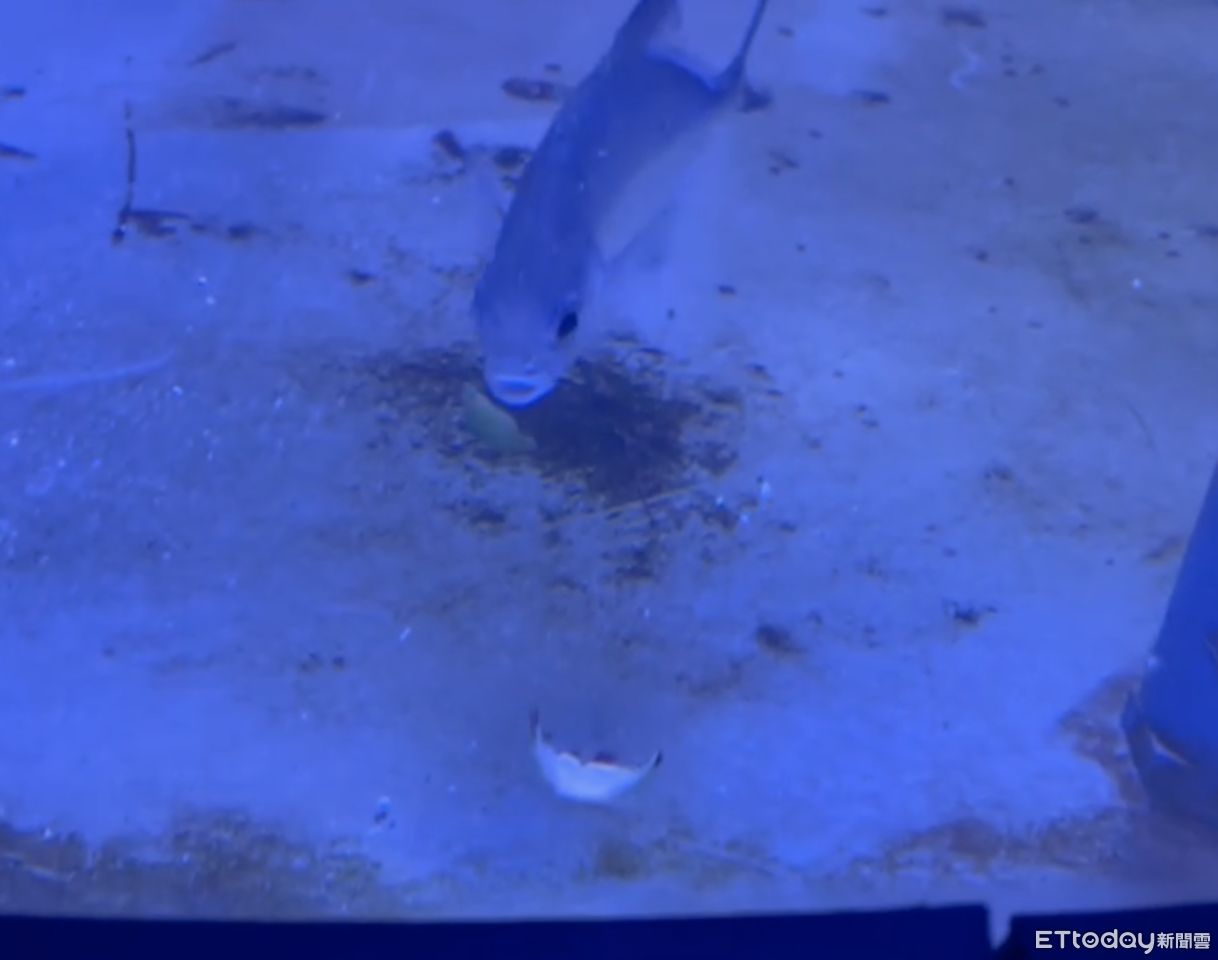 ▲水族館同仁巡場時發現魚在吃不知名的東西,近看發現魚竟然在吃檳榔。(圖/澎湖水族館提供)