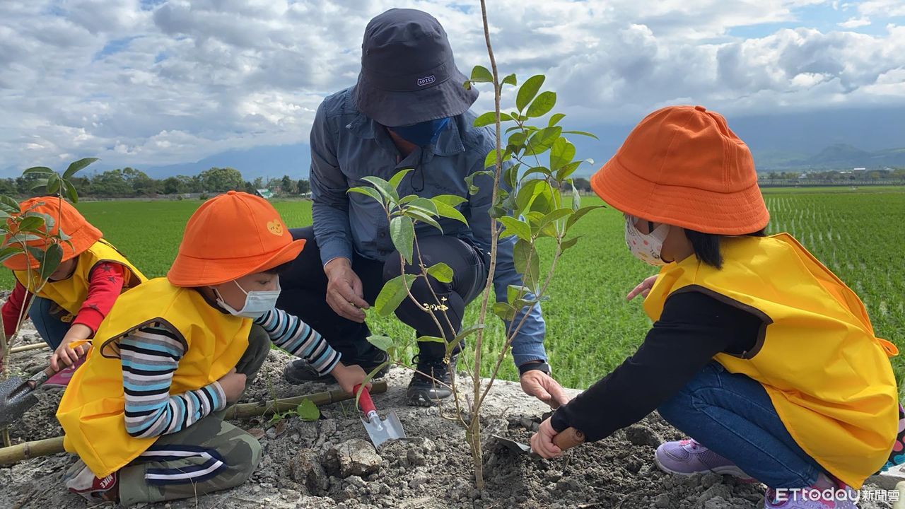 ▲台東縣關山鎮立幼兒園的小朋友來種樹。(圖/記者楊漢聲翻攝)