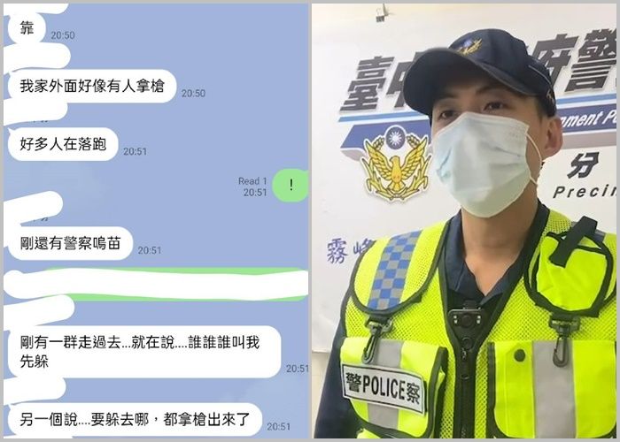 台中市大里區周六晚間網傳有民眾在家門外聽到有人拿槍,跑給警察追,文章引起民眾關注。對此台中市警局霧峰分局長晚間出面說明為債務糾紛,沒有持槍一事。