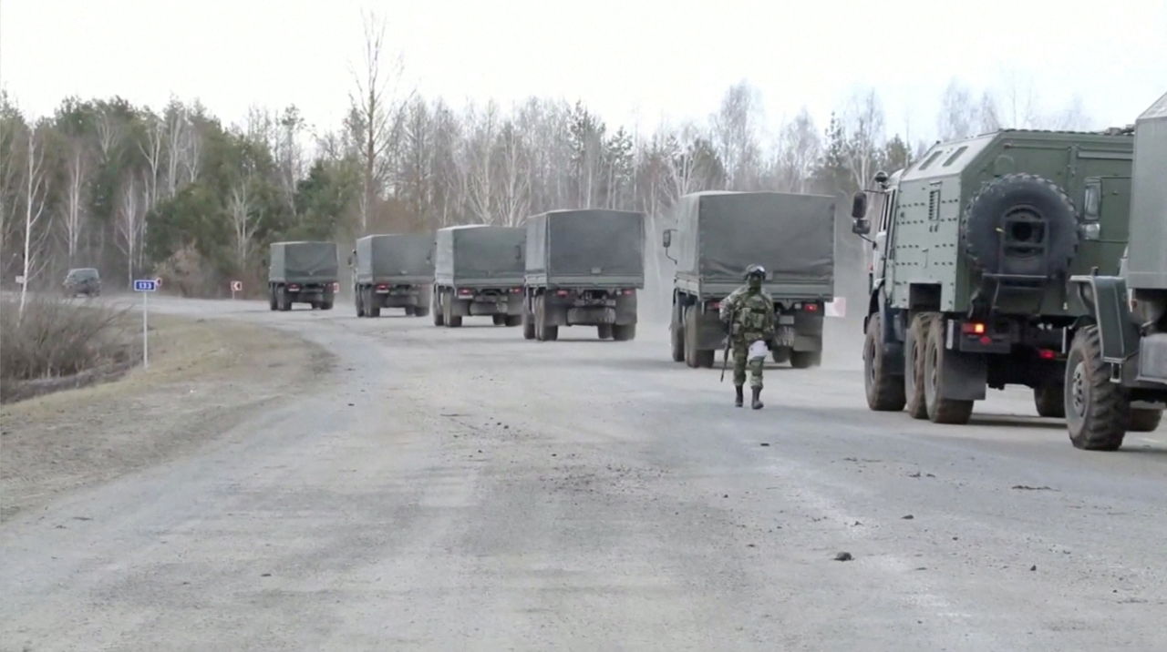 烏俄衝突戰場原先集中烏克蘭首都基輔,衛星照卻捕捉到一列長達64公里的俄國坦克車隊在基輔25.7公里外卡關3天,疑似因後勤問題無法推進。但烏克蘭國防官員稍早警告,俄軍正準備對基輔發動「全面進攻」,且持續透過被俄軍攻佔的車諾比核電廠禁區補給燃料。
