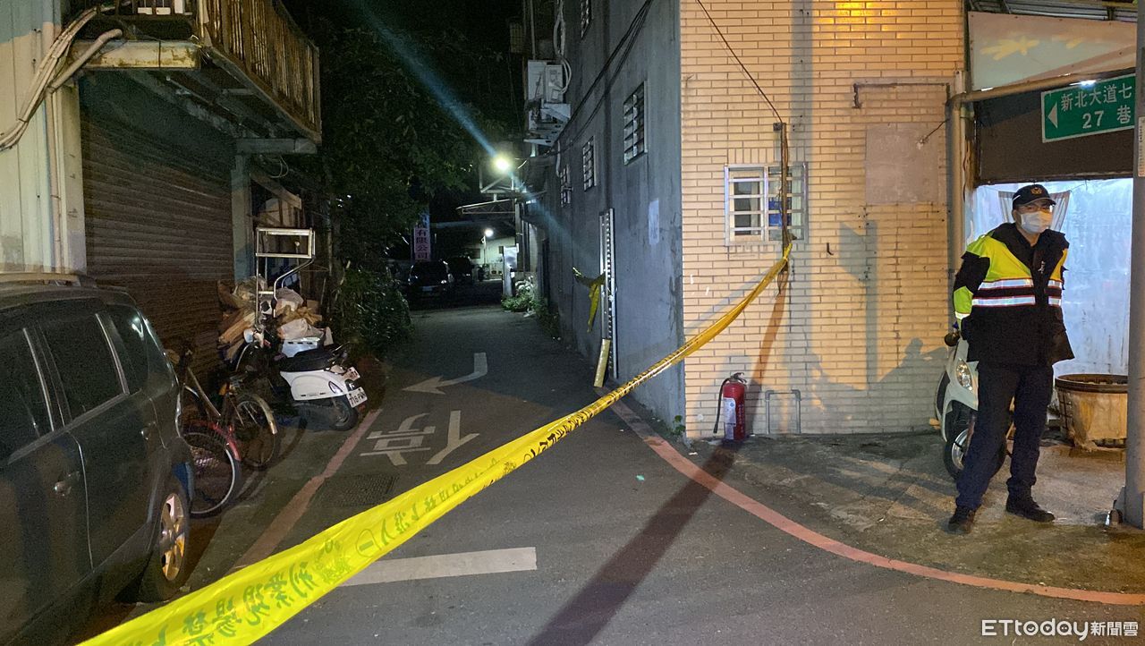 ▲泰山男疑因毒品債務糾紛,遭多人圍攻,胸口中刀斃命,警方在現場圍起封鎖線拍照採證。(圖/記者游宗樺攝)