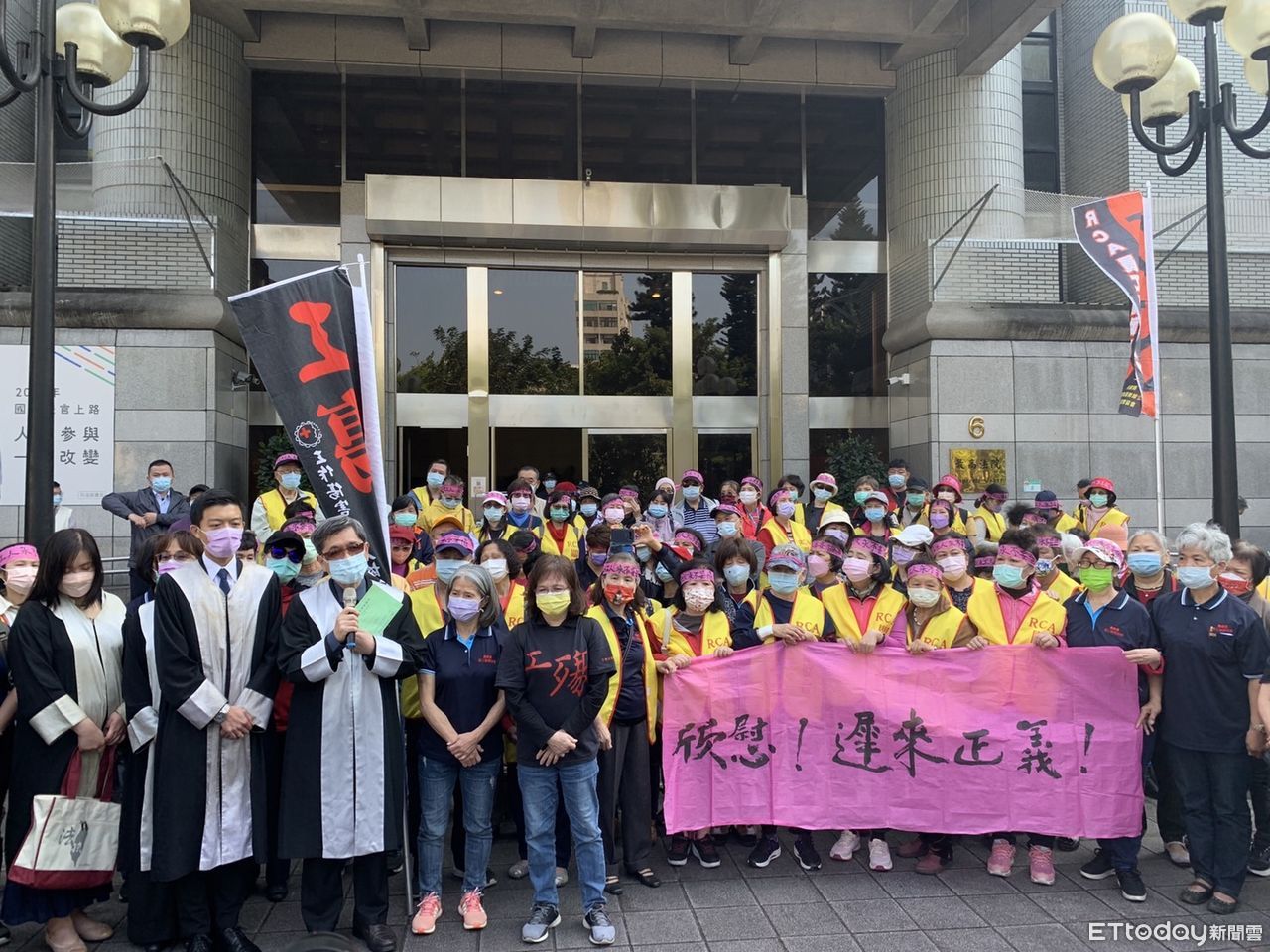▲RCA被害工人與律師團,在最高法院外高喊口號。(圖/記者吳銘峯攝)
