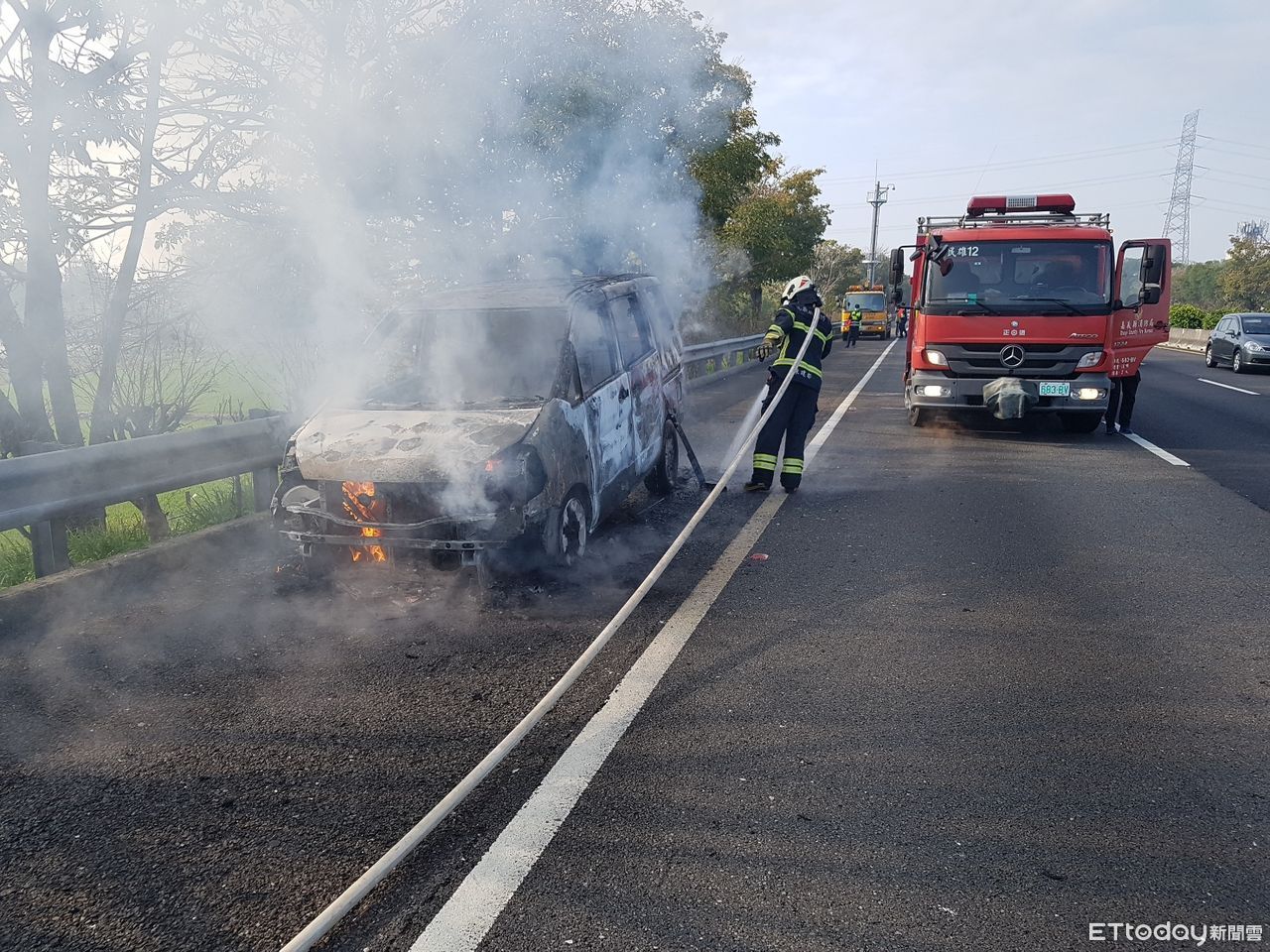 ▲國道火燒車。(圖/記者翁伊森翻攝,下同)