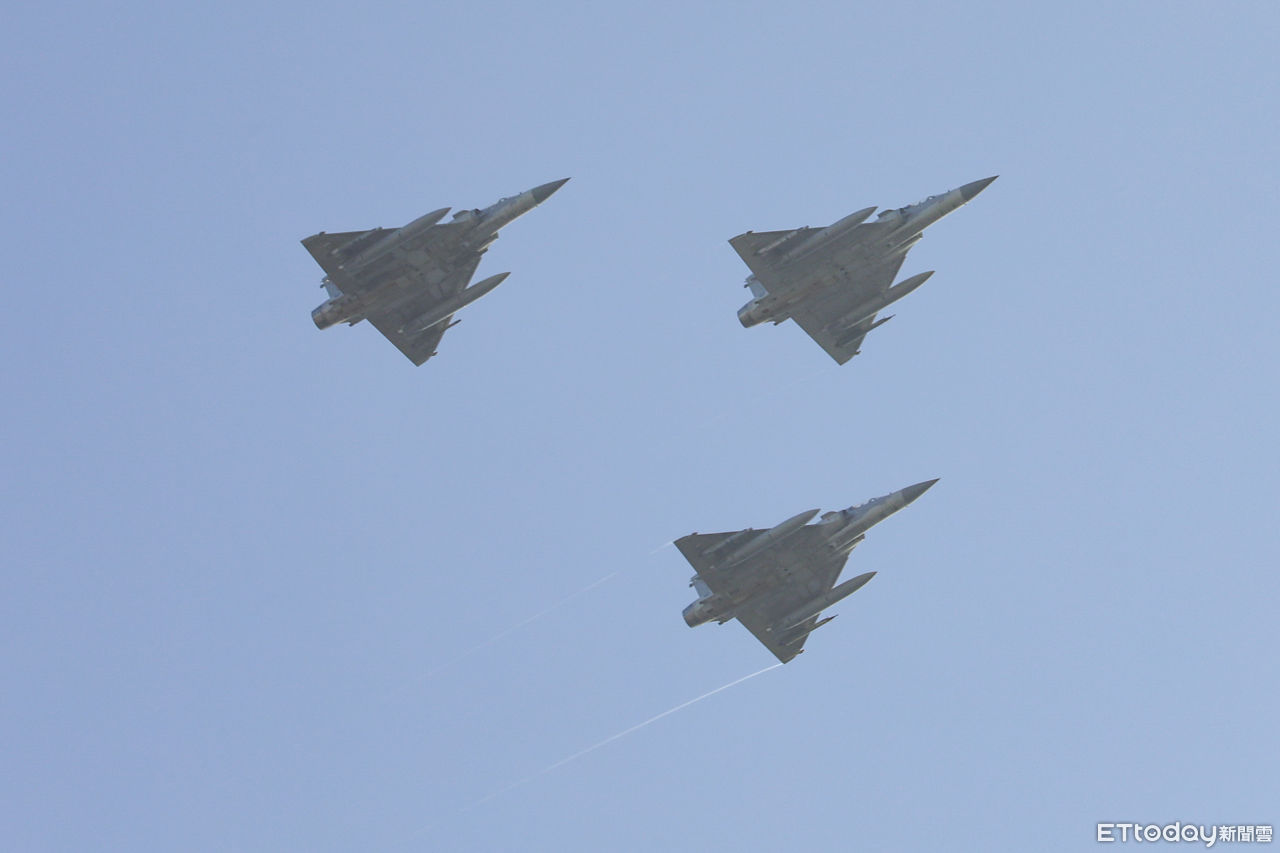 ▲幻象2000戰鬥機飛越台北上空。(圖/記者林敬旻攝)