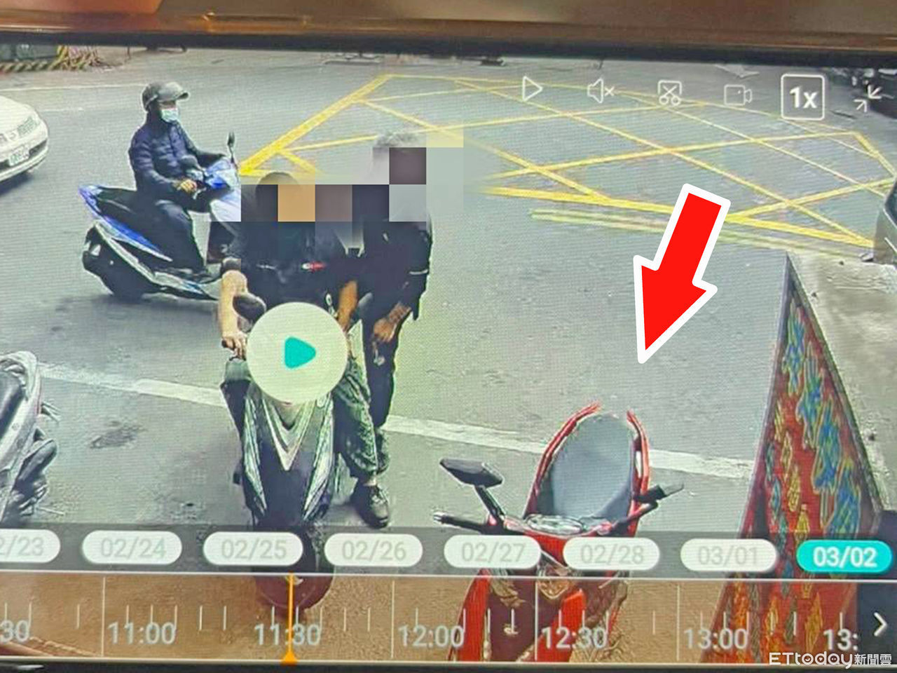 ▲警方調閱監視器發現兩名男子將林女紅色機車牽走,循線找到機車行「破案」,是林女親手將鑰匙交給機車行修車的。(圖/記者蔡佩旻翻攝)