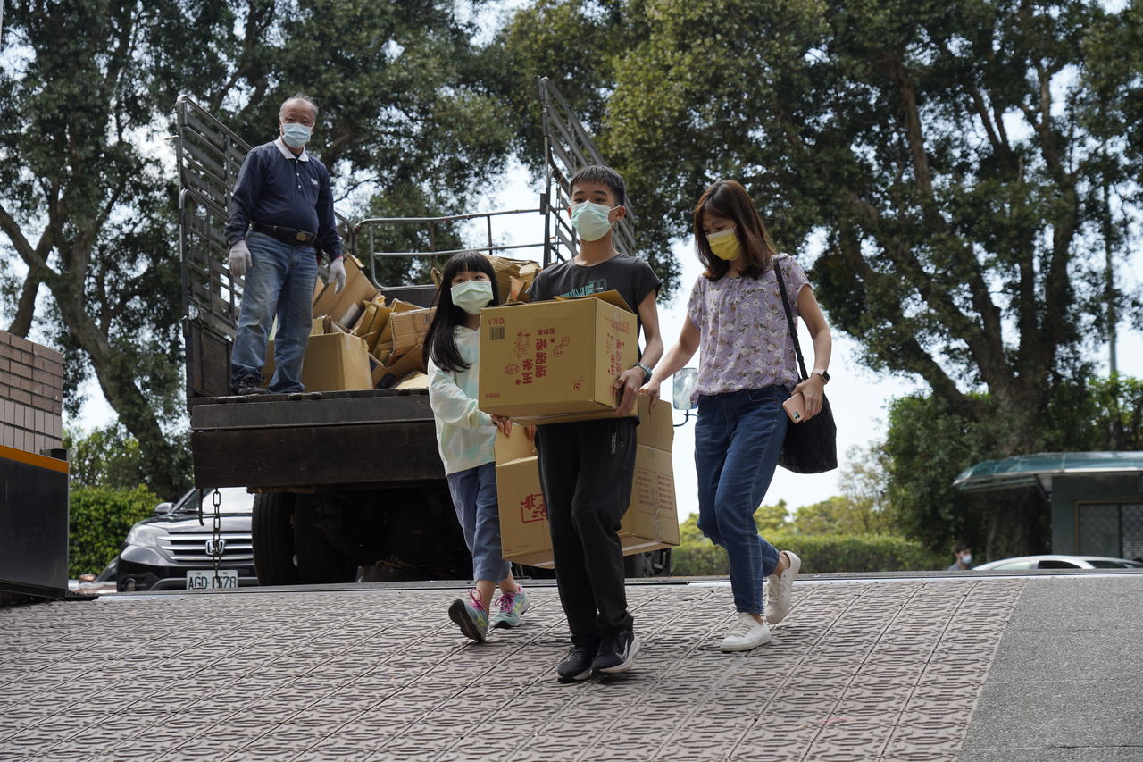 而慈濟志工顧蘭君也帶著一對兒女來捐物資,同時讓孩子留下來協助打包,期望孩子也學習,急難救助除了捐錢還可以做什麼,例如在擔任志工時,如何帶最輕便的東西,讓自己的負擔最輕,發揮最大的力量;更能體會除了父母給予之外,孩子也能在社會中懂得付出。