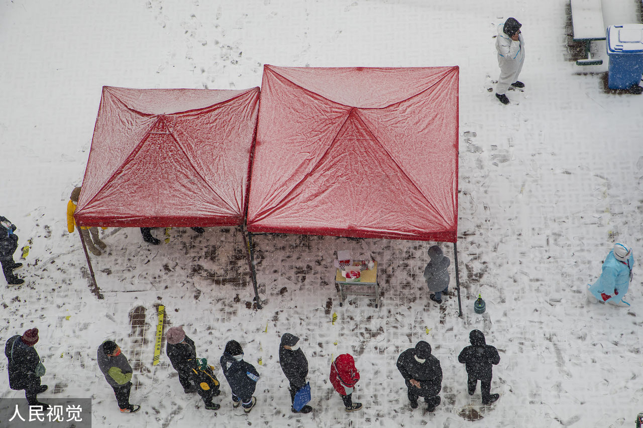 ▲吉林民眾在雪地排隊做核酸檢測。(圖/CFP)