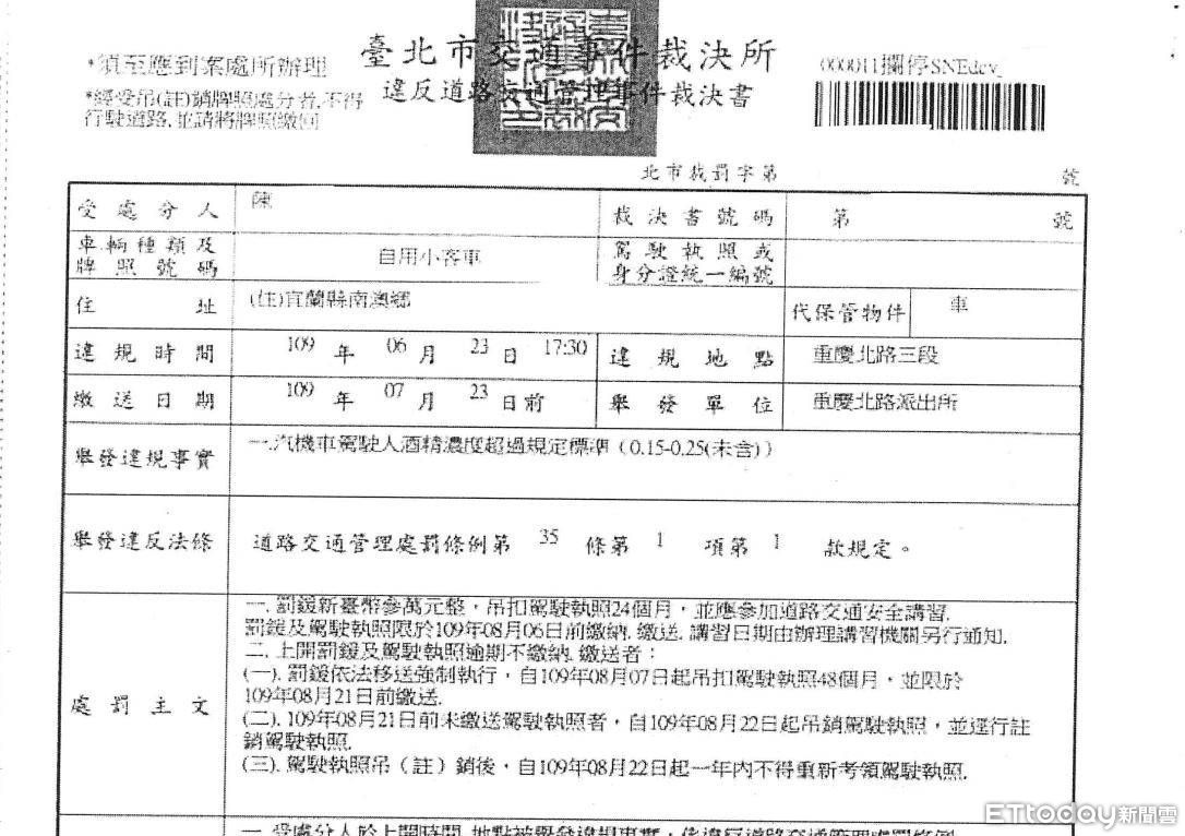 ▲陳女未繳清酒駕罰款,陳母在書記官上門後,代女繳清罰鍰。(圖/記者游芳男翻攝,下同)