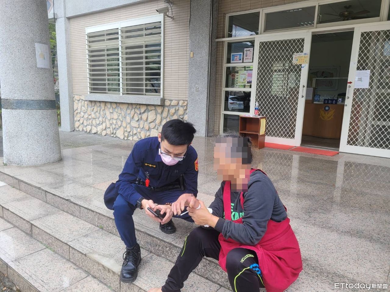 ▲所長安撫婦人並從手機的網路尋找圖鑑讓婦人辨識蛇種。(圖/鳯林警分局提供,下同)