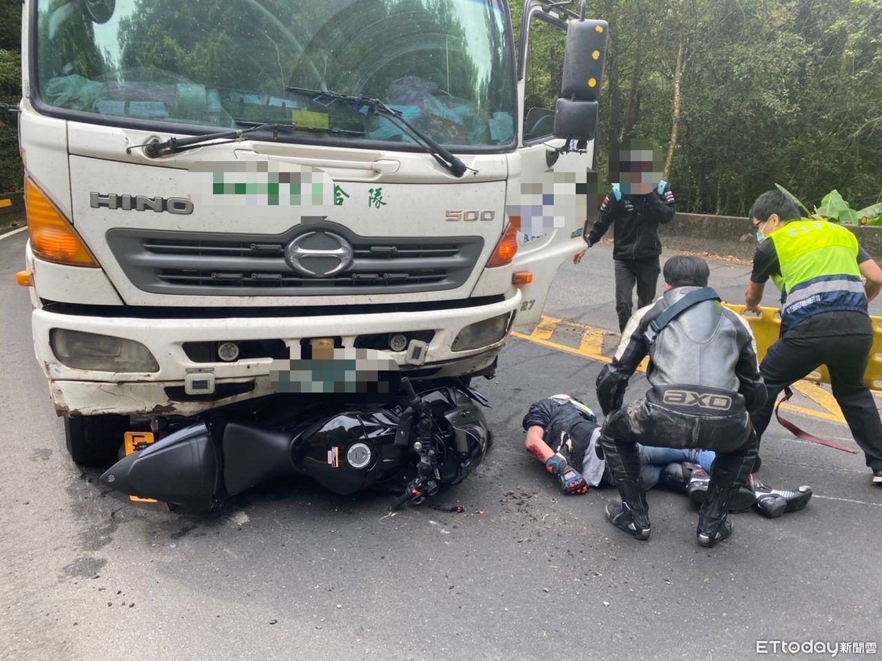 據了解,當時大貨車正要送菜到台北地區,沒想到遇上失控倒地的21歲劉姓騎士,所幸大貨車的速度不快,能及時煞停,有路過民眾表示,劉男倒地後,頭部跟大貨車的輪胎只差5公分的距離,如果大貨車沒有馬上停,劉男很可能會被爆頭。