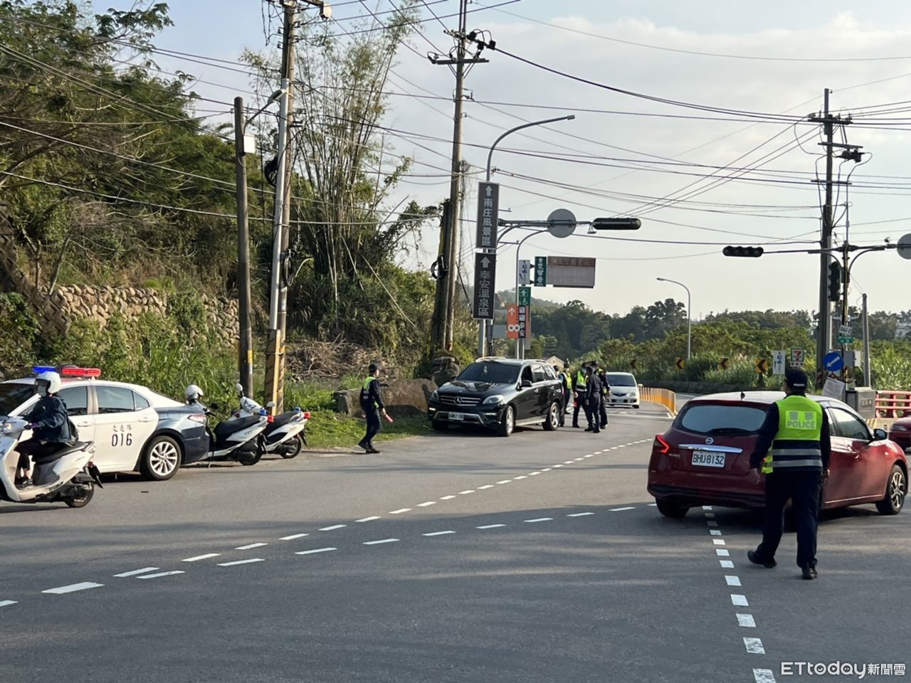 適逢下午為離開風景區尖峰時段,也出現間歇性車流,警方快速出動10名人力協助排除交通障礙及交通疏導,並同步通知養護單位苗栗工務段派員檢修,不到半小時就先行恢復供電,紅綠燈也正常運作。