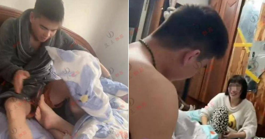 ▲男子光著上半身,女同事也只穿睡衣。(圖/翻攝自網易新聞)