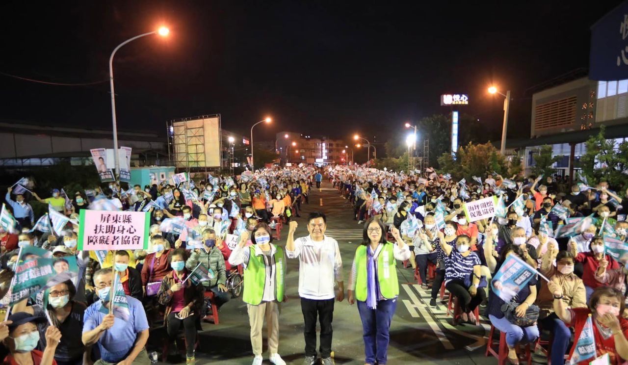 ▲莊瑞雄20日晚間在屏東東港舉行造勢,管碧玲、吳玉琴到場站台。(圖/翻攝自Facebook/莊瑞雄)