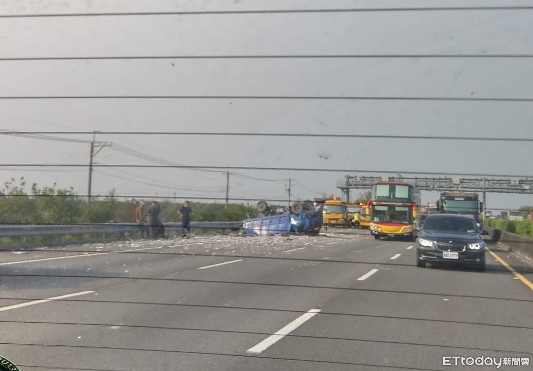 ▲▼國道中山高水上段貨車翻覆 。(圖/記者翁伊森翻攝)