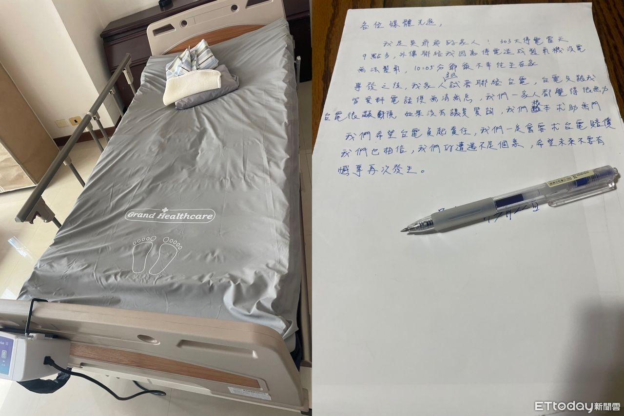 邱于軒今天前去個案家屬中探訪,轉述家屬心情相當悲痛、傷心。她也曝光家屬的親筆信,內容寫道,「我是吳爺爺的家人,303大停電當天9點多,外傭聯絡我因為停電造成製氧機沒電而無法製氧,10點05分爺爺不幸往生在家。」