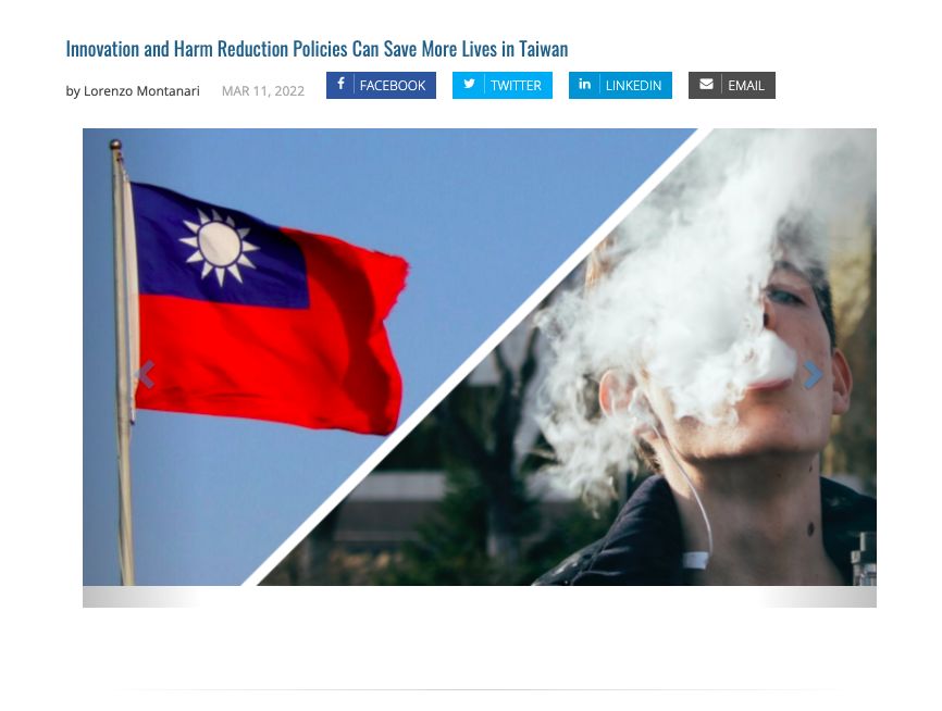 私有產權世界聯盟行政總裁蒙毅倫(Lorenzo Montanari)本月11日以「創新減害政策挽救臺灣生命」為題發表文章指出,台灣政府正考慮對菸害防制法(THPCA)進行一系列修訂,以預防和減少由菸草製品引發的危害。這一修正案是一個重要的里程碑,因為它擴大了室內禁抽區域面積,更重要的是通過加熱菸草產品的商業化。