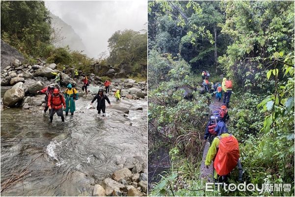 ▲搜救人員在溪谷一處平台尋獲林女遺體。(圖/記者高堂堯翻攝)