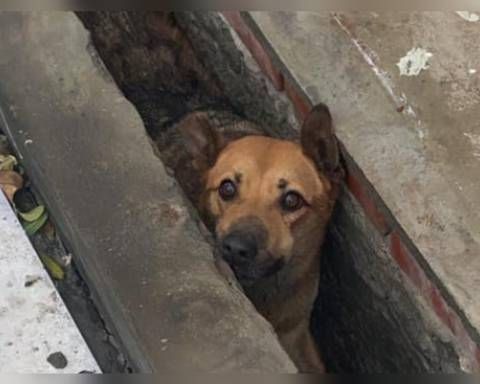 花蓮23日凌晨1點41分發生規模6.6強震,全台各地明顯感受到劇烈搖晃,彰化4級震度,不少民眾被嚇得腿軟,而鹿港有1隻流浪狗今天清晨卡在教堂的水溝內動彈不得,露出驚惶無助的眼神,鹿港消防分隊獲報後緊急前往,敲掉磚塊,所幸救出浪浪後毫髮無傷。