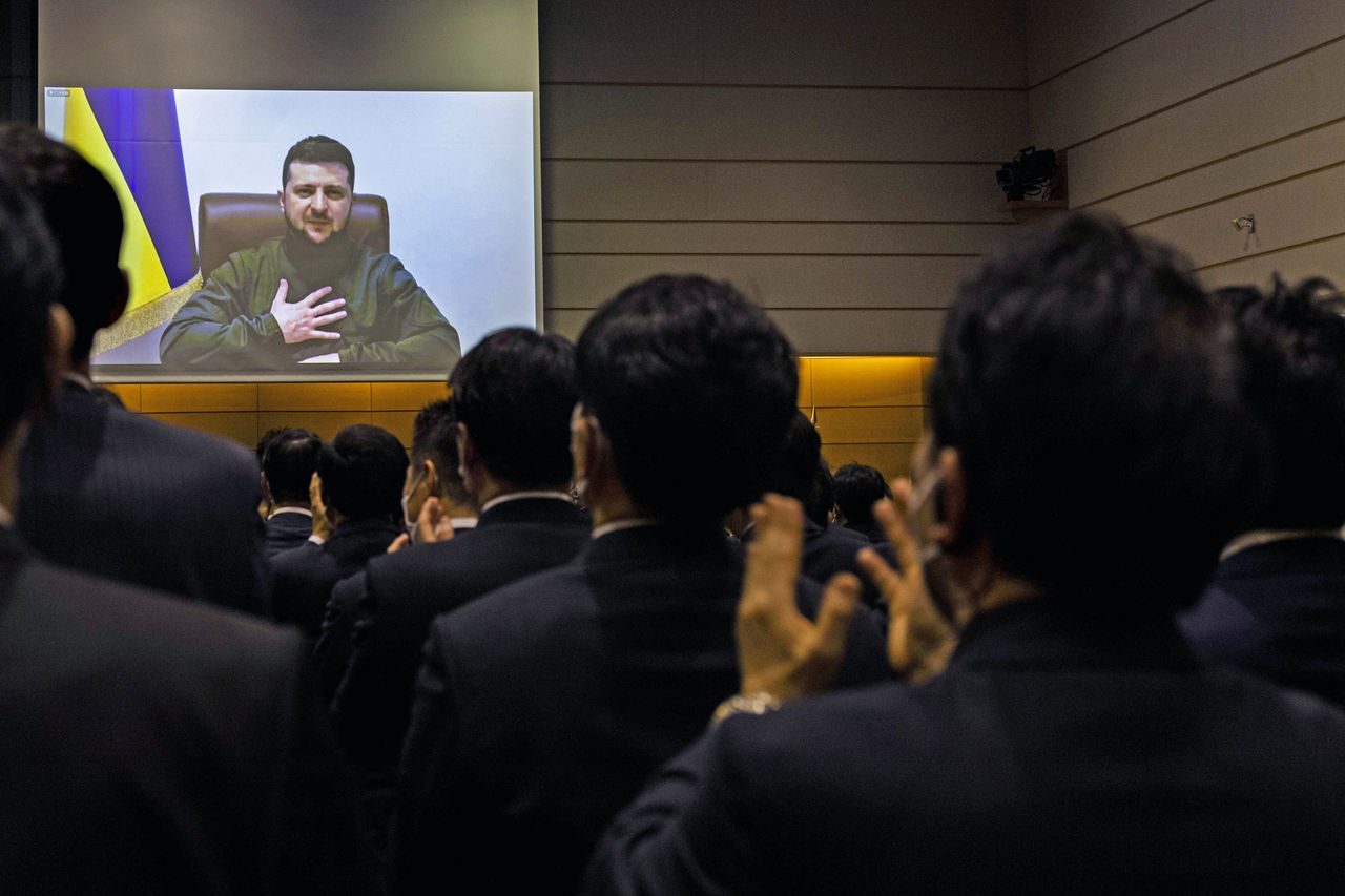 烏克蘭總統澤倫斯基於俄烏開戰後,相繼在歐洲、美國、加拿大等國會進行視訊演說,23日他在日本國會發表視訊演說,內容講述許多日本人能感同身受的事件。會後日本首相岸田文雄表示,澤倫斯基的演說讓他十分感動,日方會考慮進一步提供烏克蘭人道援助。