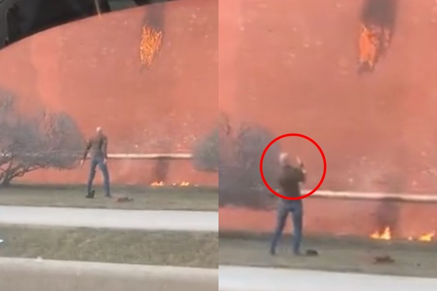 《每日郵報》報導,這段影片是由一名路過的駕駛拍下,只見窗外一名男子站在克宮外的草坪上,對著紅色磚牆投擲一枚正熊熊燃燒的汽油彈,圍牆被擊中的位置和下方草地都燃起火焰,燒出一小片焦黑痕跡,而這名男子還激動朝建築大吼大叫,一面咒罵一面擺出罵人手勢。