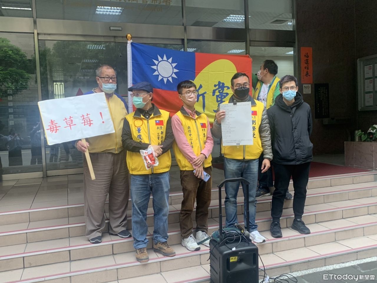 ▲新黨到疾管署前抗議,質疑民進黨縱放日本毒草莓進口。(圖/記者嚴云岑攝)